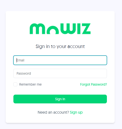 - Log in with your email account and password with which you access Mowiz.