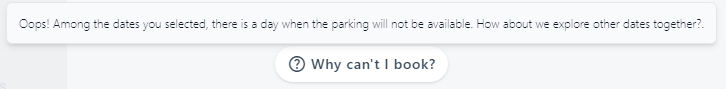 - The prices that you will see on the screen are final prices that include the stay, transfers (when a transfer is needed to get to the terminal) and VAT. When our system shows you the price it will be because there are parking spaces available in that car park for the indicated stay. Otherwise our system will show you a sign indicating "not available" or "parking full".