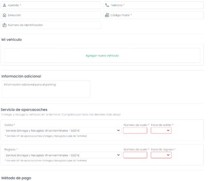 Clique em Reserve este estacionamento e preencha o formulário com os dados obrigatórios assinalados com um asterisco (*).